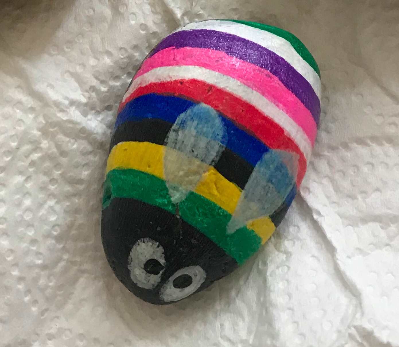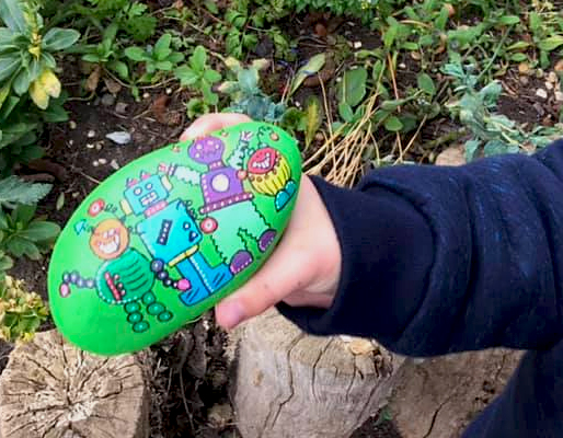 It all started when I visited Charlecote Park one afternoon with my family and found a rock in a flower bed with some colourful robots painted on it. On the back of the rock, it said: “Henley Rocks FB – post pic and re-hide! Alex x.” Some on-the-spot Googling took us to a Facebook group, which immediately opened us up to the world of rock painting – a completely benign pastime with no other agenda than to make people smile.