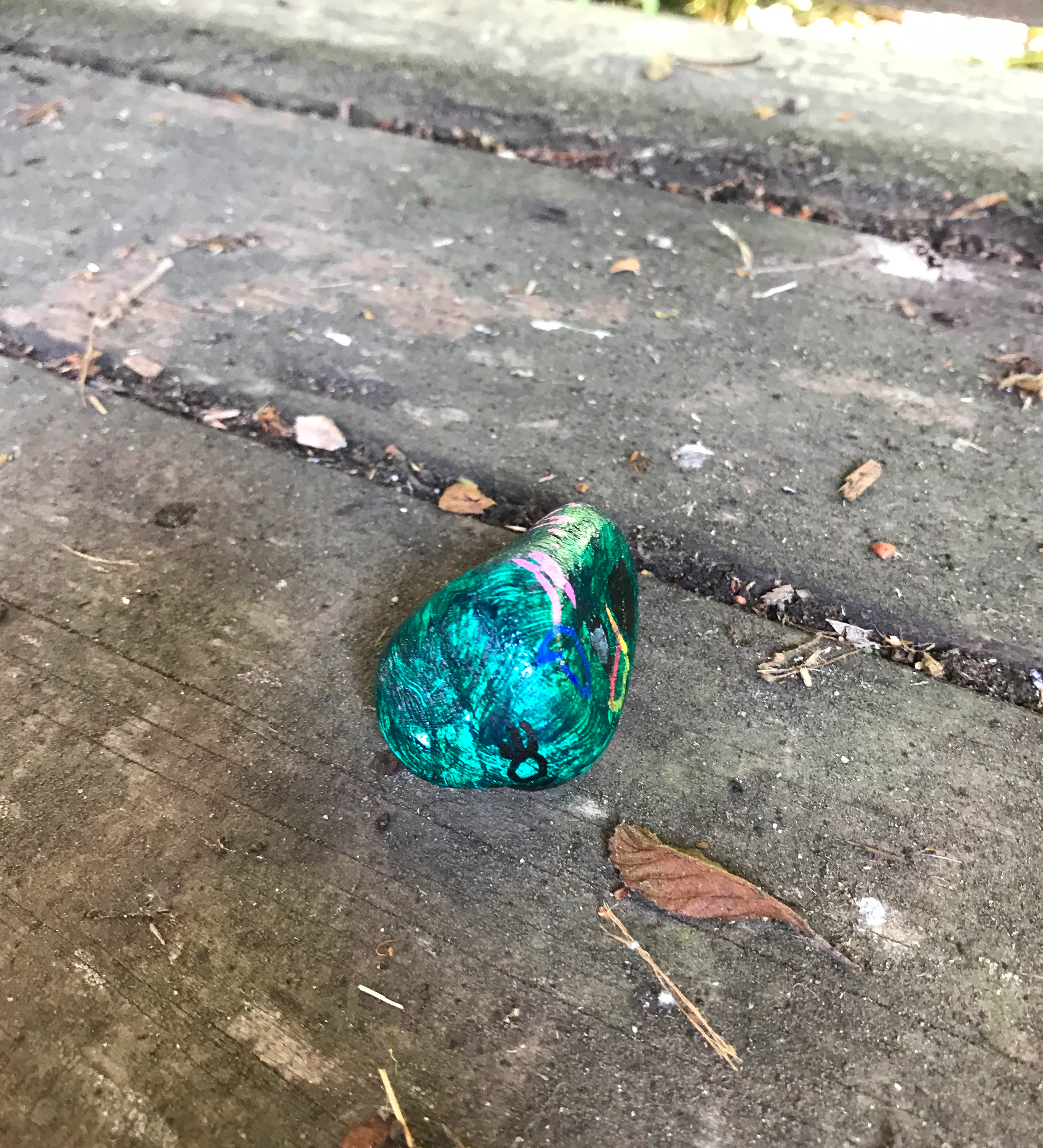 But it’s the thrill of someone potentially finding your rocks, and posting about it, that keeps you painting and hiding them. I rarely go anywhere these days without scouring the surrounding landscape for perfect rocks to shove in my pockets, as well as keeping my eyes peeled for other people’s hidden artworks. It’s become something of an obsession.