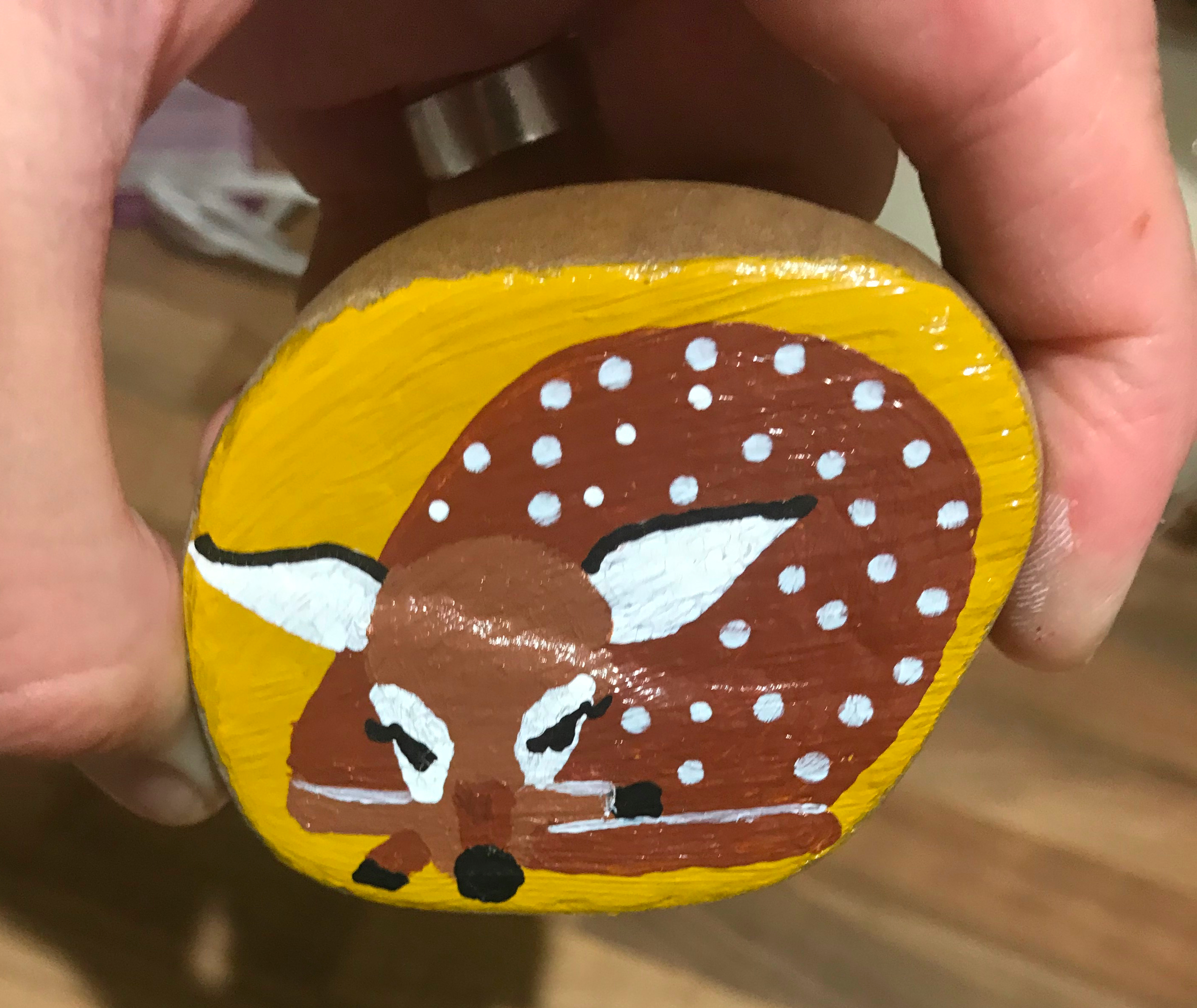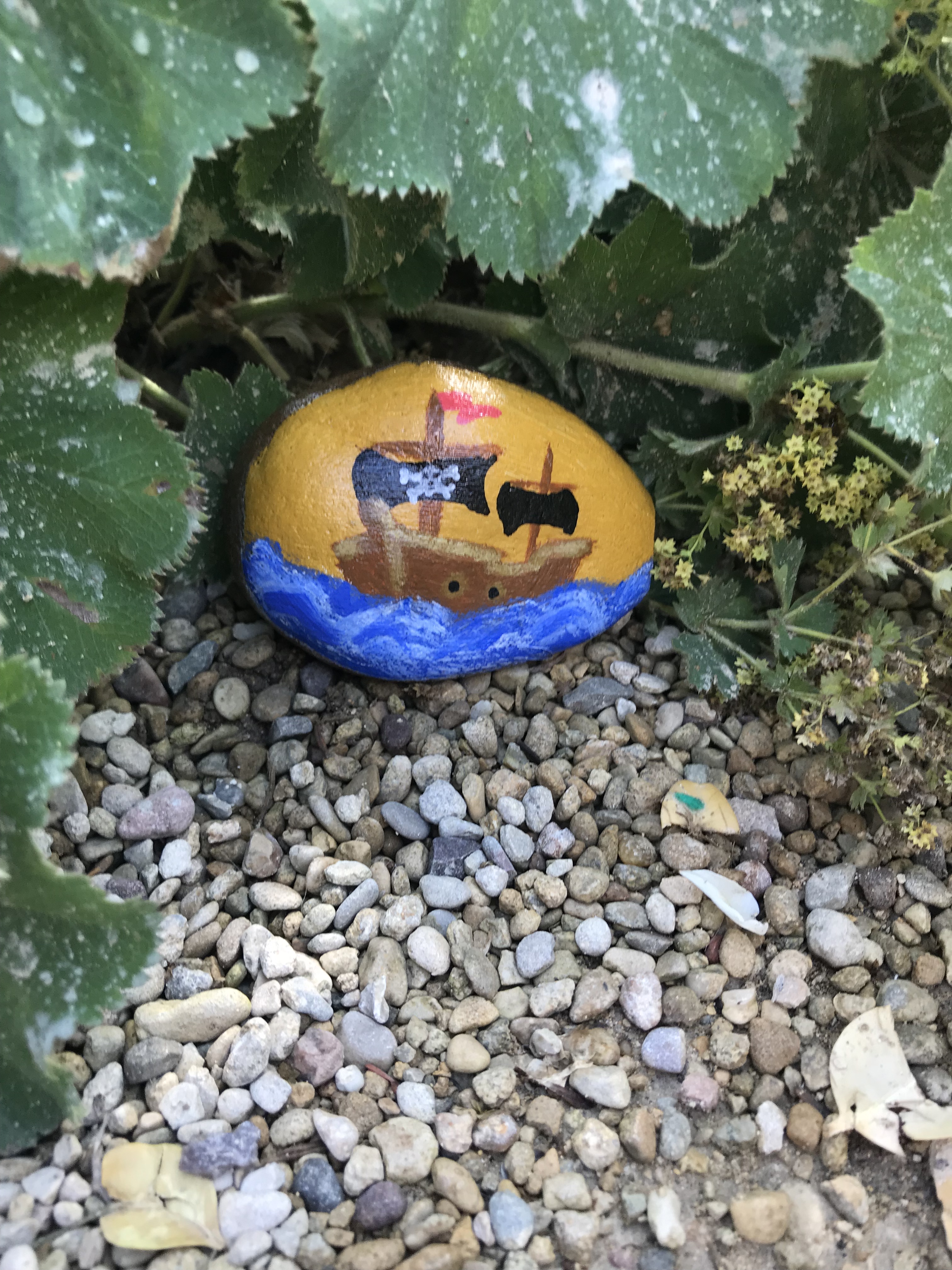 Since that time, I’ve painted several more rocks but very few have been posted to Facebook. My happy elephant, which I left on a windowsill outside an ice cream parlour: gone. My sleeping deer, which I hid in the log-pile at Mr Ferdy Fox’s House at Priory Maze & Gardens: taken within an hour. My bears, my pirate ship, my rainy day foxes, my son’s ‘monkey face’ and crocodile, my wife’s rainbow bug and hedgehog… all disappeared without a trace.